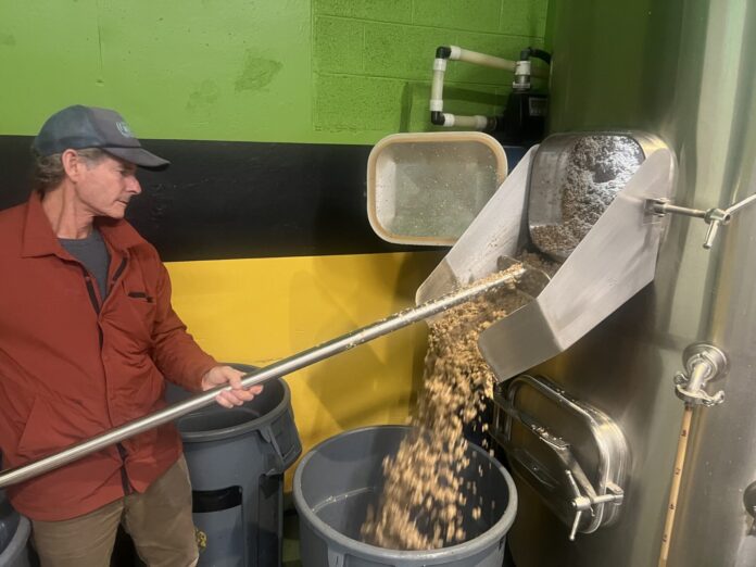 Our job in all of this? All they’d trust us with was scooping out the leftover spent grain from the mash tun into trash cans, where it’ll get donated to a local rancher to feed pigs, goats, and chickens. Cheers!