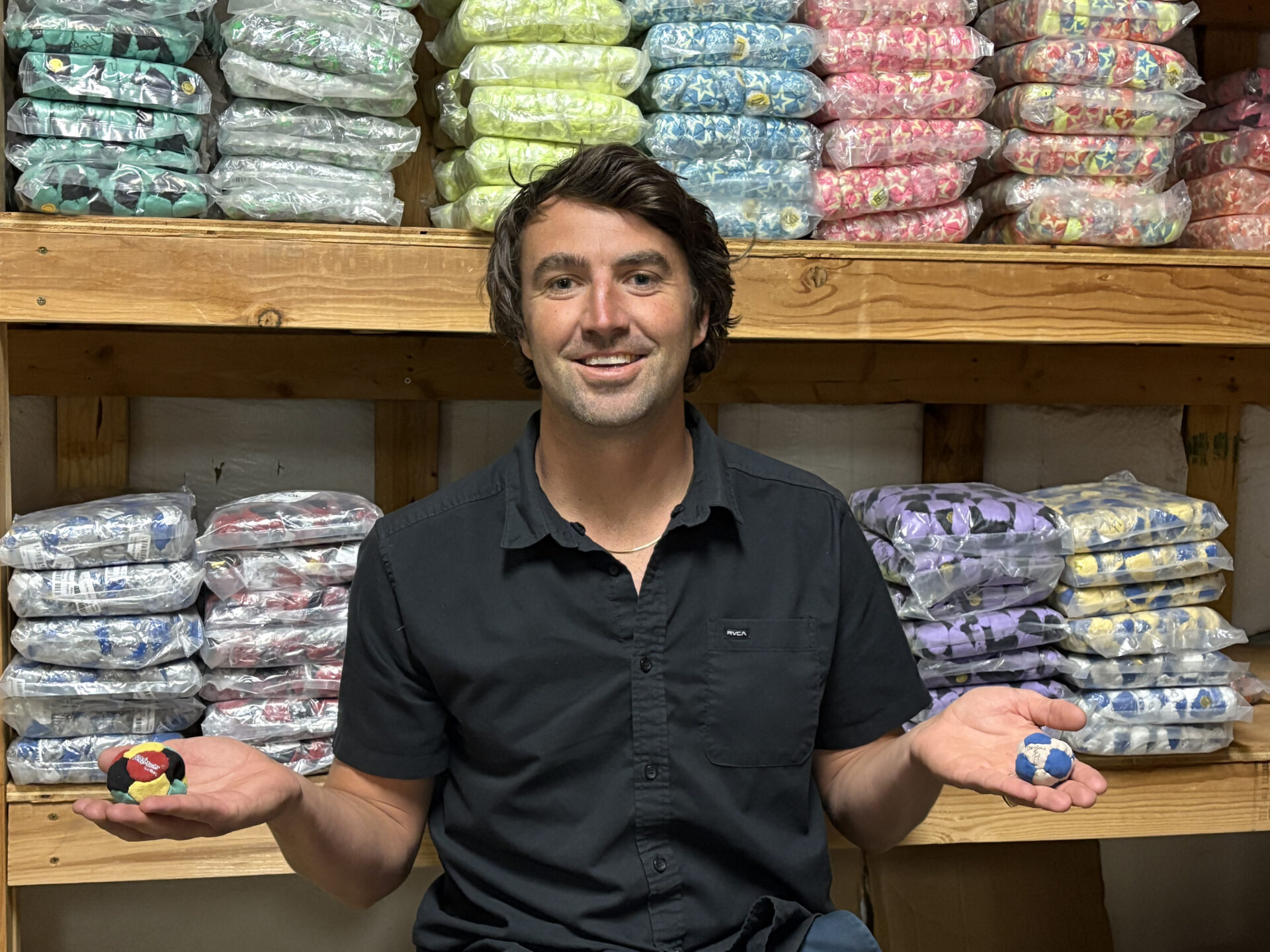 Greyson Herdman didn’t have to say “Can I hack in?” when he purchased the company last April. He had the inside track, buying it from his father-in-law and company founder Bruce Guettich. “I’m fired up and having a really good time with it,” says Herdman, who moved here three years ago from Bellingham, Wash., to work for the company. “I always played footbag and even made them, so to be running World Footbag Co. is a dream.”