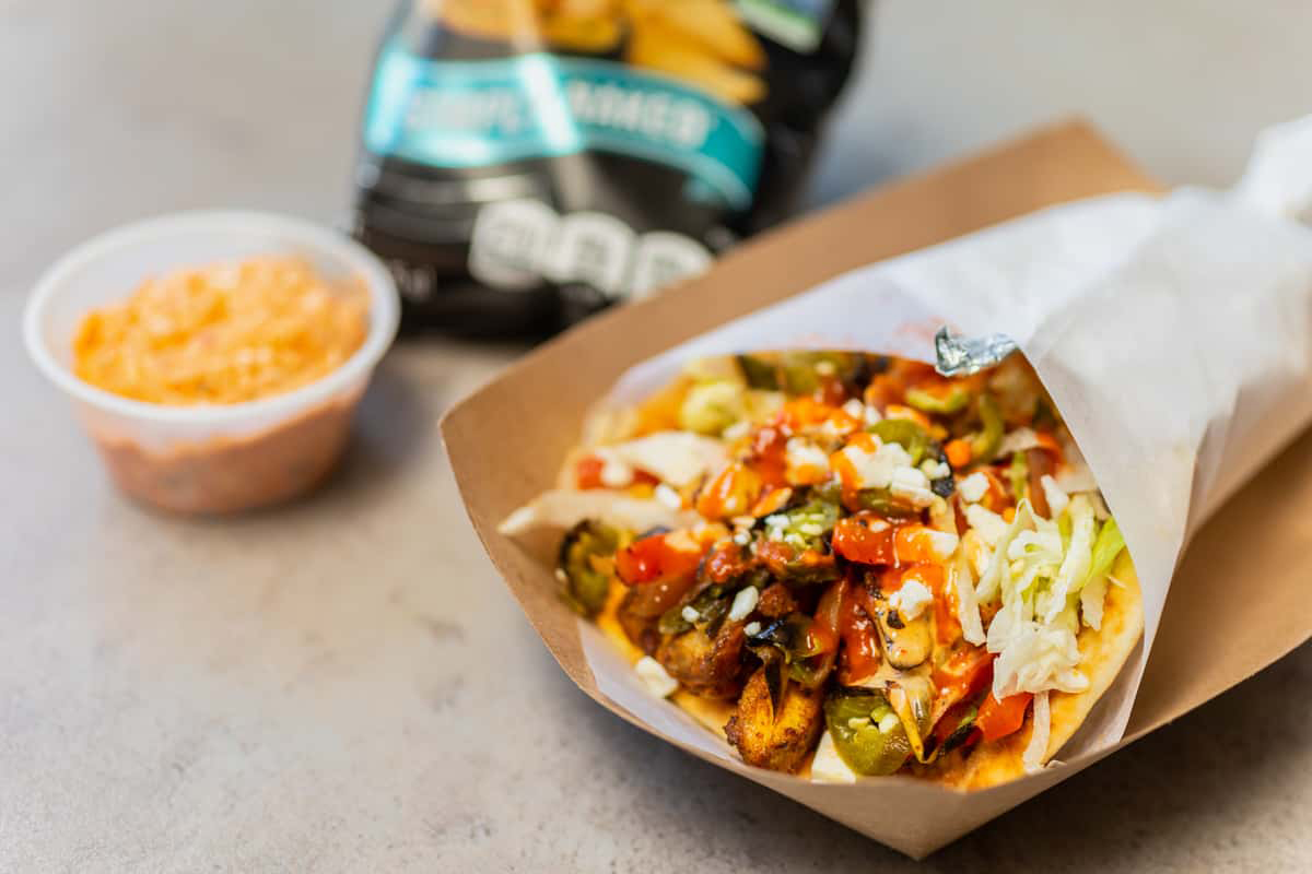 Skull Creek Greek Hades: Hotter than a breakup text and twice as satisfying. That’s the storyline behind this noontime nirvana, laced with spicy chicken shawarma, roasted serranos, grilled peppers and onions, feta, harissa aioli and sriracha. That enough hot stuff for you? All combined, it’ll have you questioning your life choices – in a good way.