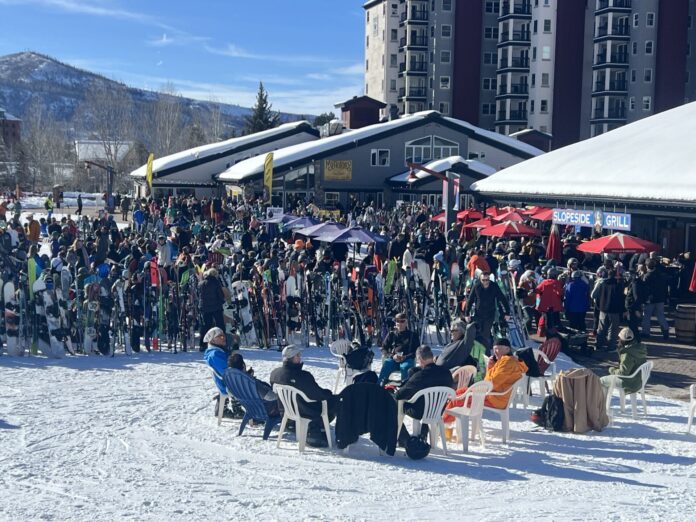 The Range/Timber&Torch: The Range offers food and a bar downstairs; a second-floor bar with an outdoor deck (look for people dancing in their ski boots to a DJ); and firepits and seats around the ice rink. Timber & Torch boasts the mountain’s largest party area, with patio umbrella bars and a live music dance floor (puh-lease, not in your ski boots). For grub, try the Ski Town USA Burger and Elk Chorizo Fundido, washed down with 24 beers on tap. Bonus: Happy hour from 3-5 p.m. and the names of Steamboat’s Olympians on the ceiling.